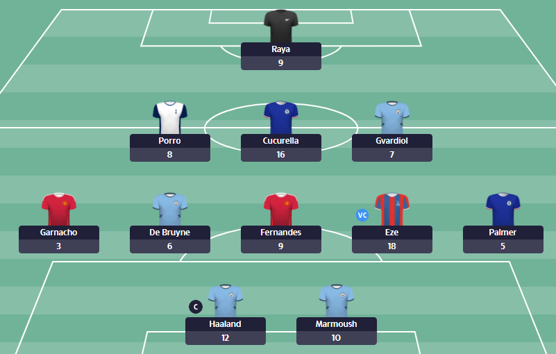 I pretty much held my position on the leaderboard during game week 36, which is a little frustrating as I look to finish the season higher than I did last time around (275th). The main things that went against me were the results in the two big finals over the week. Palace beating City didn’t help with Gvardiol not getting a clean sheet, my captain in Haaland not getting big points and Marmoush missing a penalty. I picked up points from Eze, but Munoz scored well when I’d banked on City scoring. Interestingly, not owning Munoz didn’t really affect my overall rank though. Bringing in Garnacho as a differential didn’t pan out either, with him being on the bench for both games – strange really as he looked bright when he came on and I can’t see him starting in the final game of the season either.
